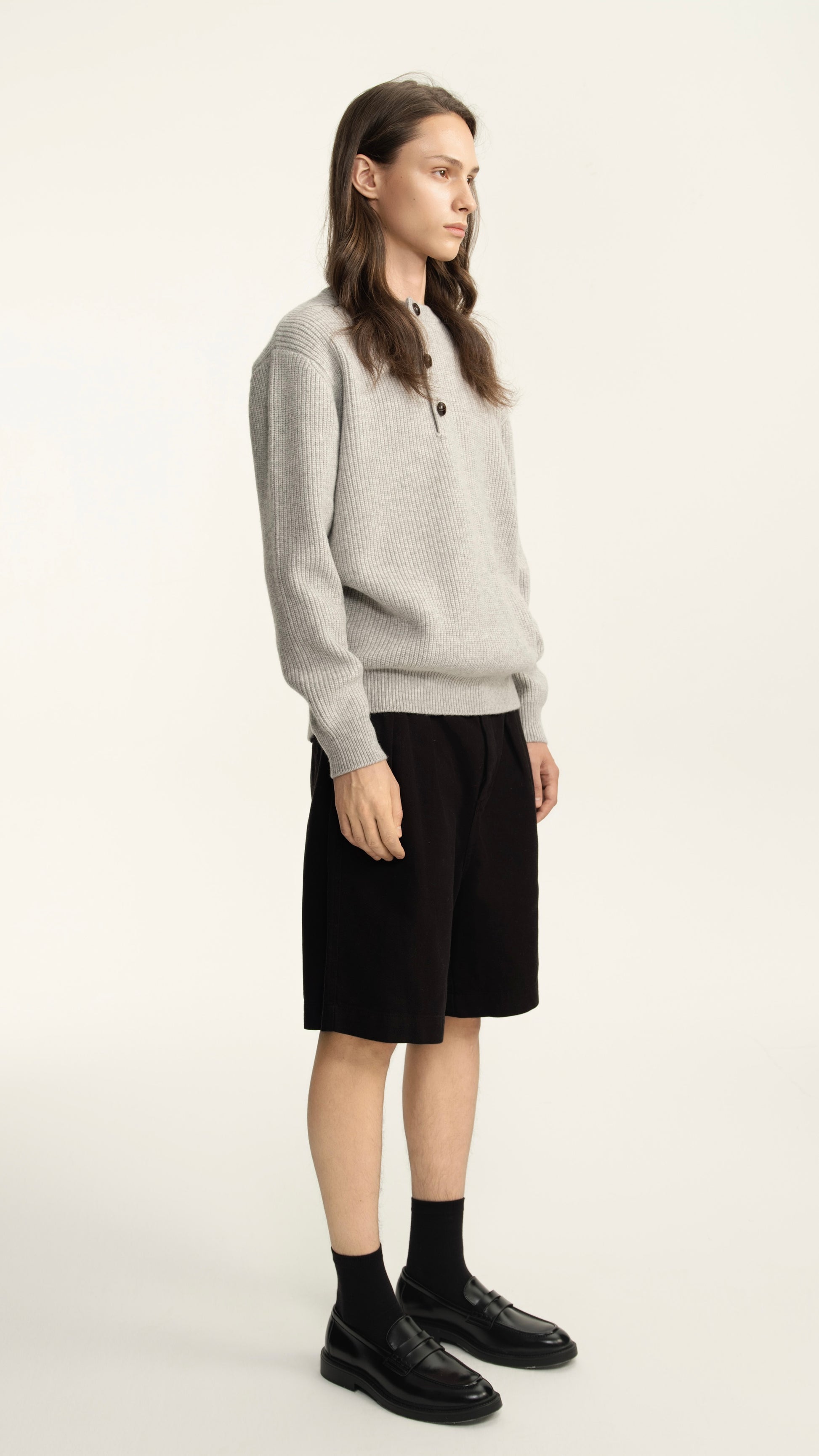 Elevate your casual wardrobe with our Yiyi Sweater. Crafted from a premium, soft-touch knit in a versatile ash grey, this jumper offers both supreme comfort and understated style. The distinctive ribbed texture adds visual interest and a luxurious feel, while the classic Henley neckline, featuring three contrasting buttons, allows for adjustable comfort and a touch of timeless appeal. Designed with a relaxed yet refined fit, this sweater is perfect for layering or wearing on its own. Its breathable construction makes it an ideal choice for transitional weather or comfortable everyday wear.